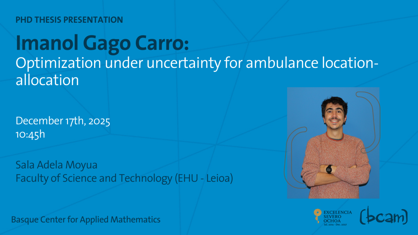 Imanol Gago will defend his thesis on Wednesday, December 17thBCAM 2025-12-12 The defence will take place at Sala Adela Moyua, Faculty of Science and Technology (EHU-Leioa) at 10:45 Imanol Gago Carro (Bilbao, 1992) has always had a strong interest and curiosity in mathematics, so it came as no surprise that he decided to pursue a d |